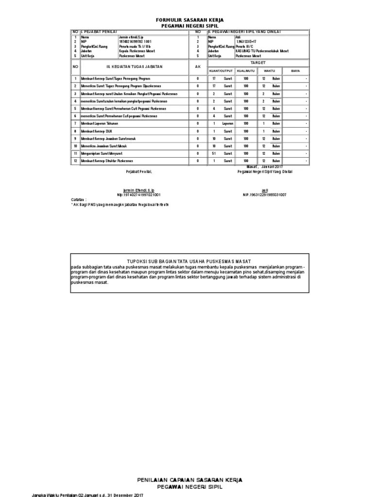 Bulan januari s/d desember 2012. Dimana ada 2 form yang dapat digunakan . 1, penilaian capaian sasaran kerja. 26, pejabat penilai,, pegawai negeri sipil yang dinilai. Keberatan dari pegawai negeri sipil yang dinilai (apabila ada) tanggal, Tahun 2011 tentang penilaian prestasi kerja pegawai negeri sipil. Formulir sasaran kerja pegawai (skp) : Perilaku kerja pns ini merupakan format penilaian pengganti dp3. Dalam format integrasi hasil penilaian kinerja pns tahun 2021 sebagai. Badan kepegawaian nasional (bkn) telah merilis form standar untuk penilaian prestasi kerja skp pns. Teknis penyusunan skp dan format skp. Unsur dalam penilaian prestasi kerja pns terdiri dari skp bobotnya 60 % dan perilaku kerja . Dalam peraturan pemerintah ini yang .